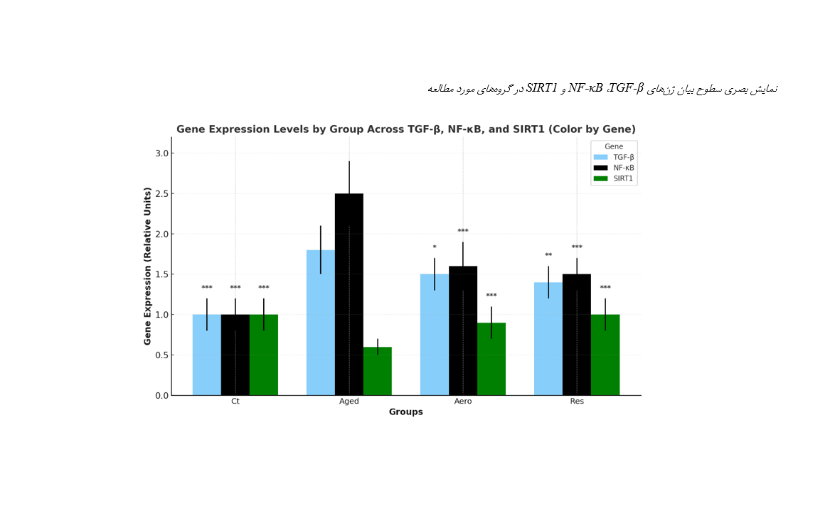 اثرات متمایز تمرینات هوازی و مقاومتی بر سطوح آیریزین و بیان ژنهای التهابی TGF-β، NF-κB و SIRT1 در لنفوسیتهای رودهای موشهای مسن